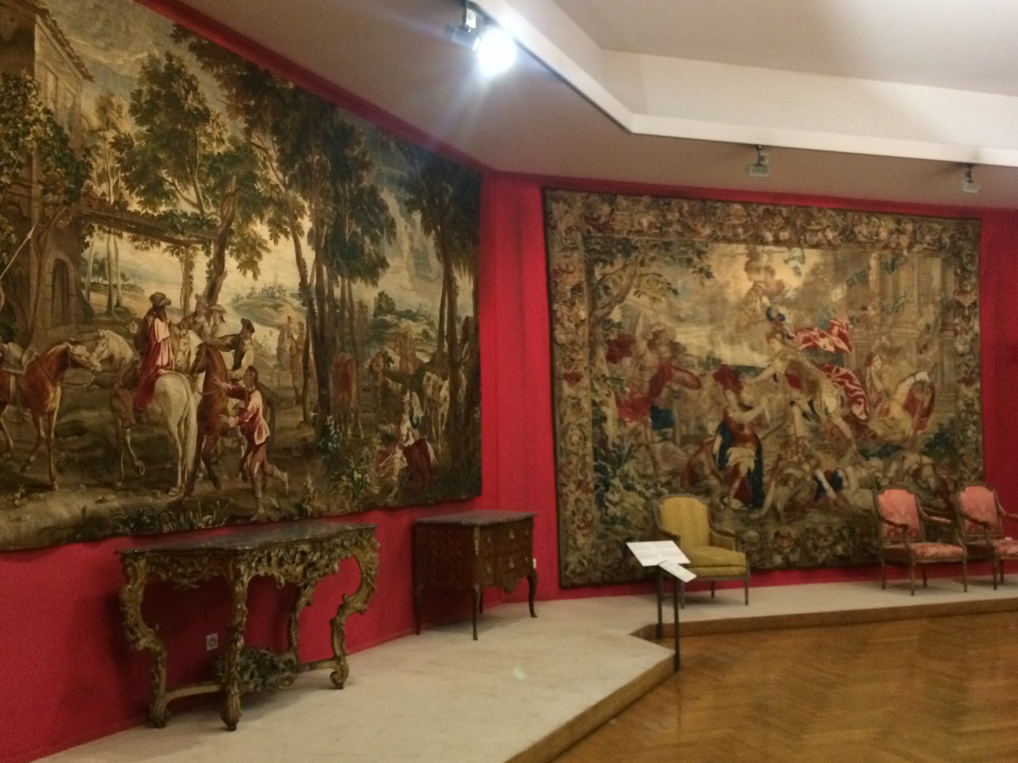 Beautiful tapestries and 16th- and 17th-century silverware are displayed. |