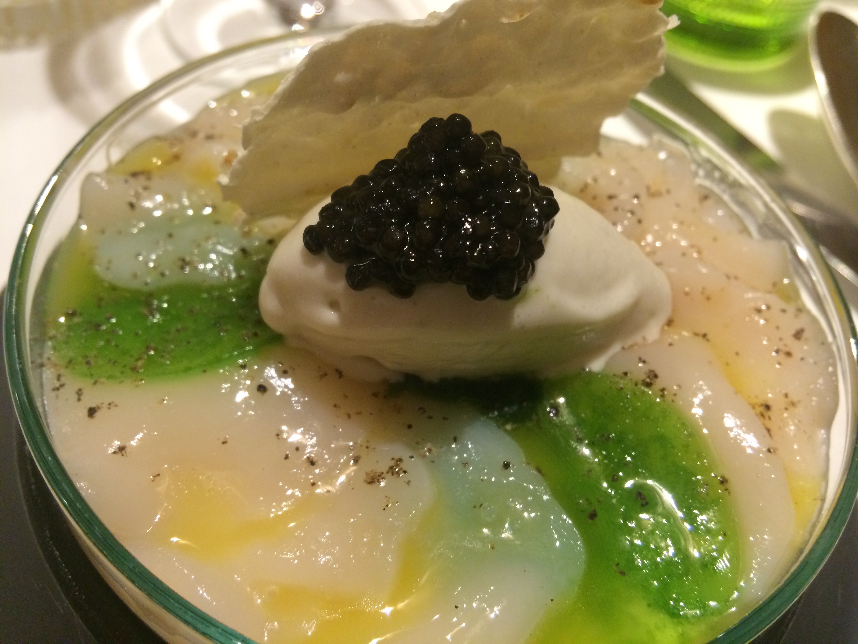 A salad of scallop with caviar. A taste was the best as well as an appearance. |