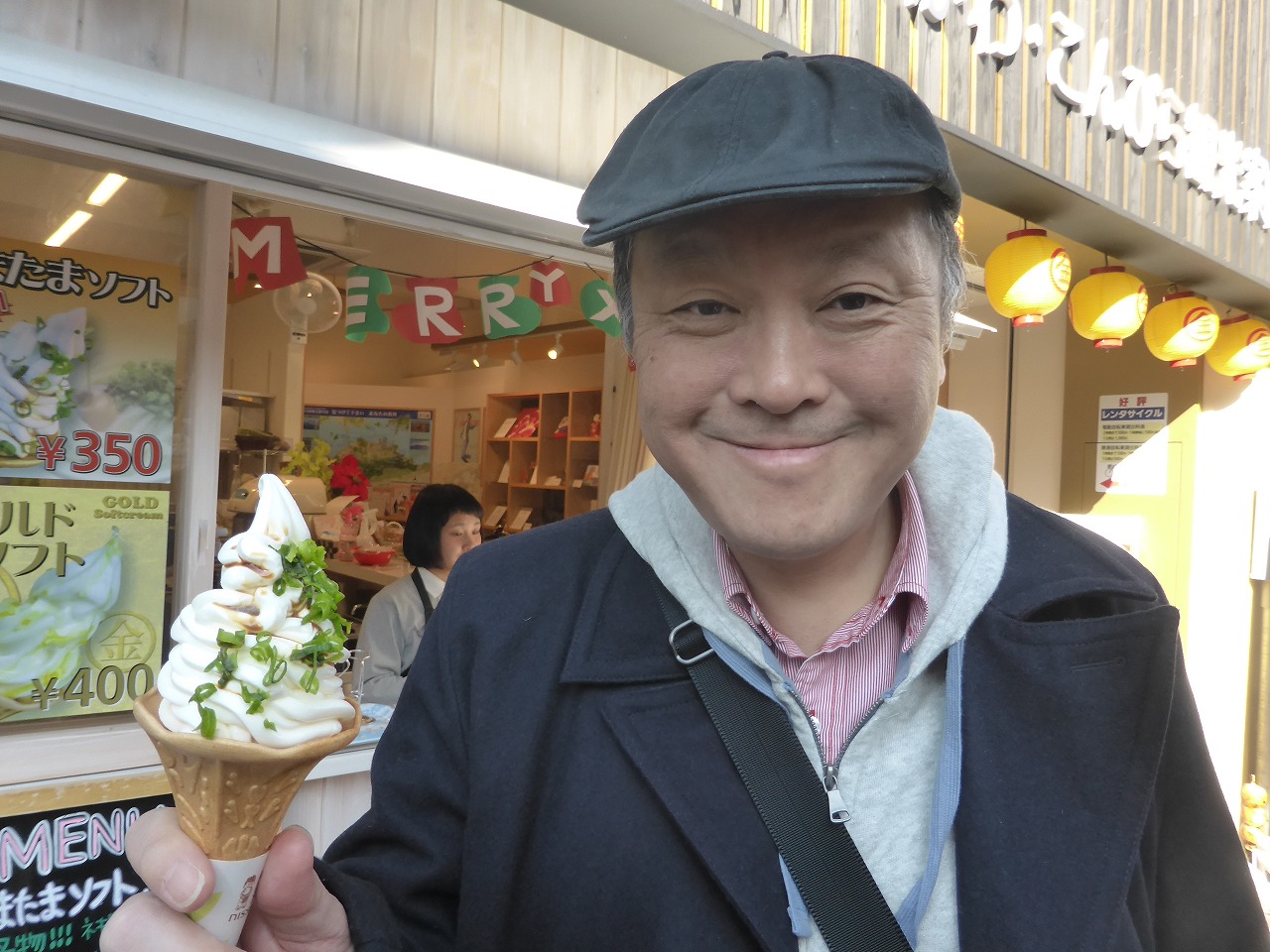 "Kama-tama soft ice cream" He enjoyed it. |