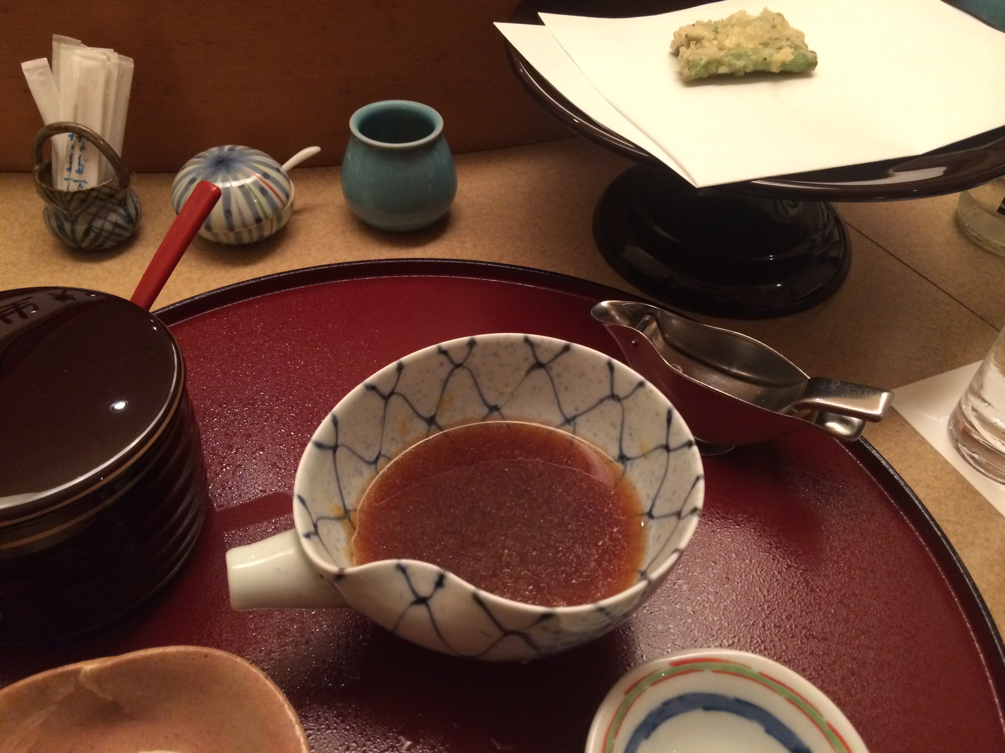 「KIHACHI」 エビの湯葉揚げスープ仕立て。