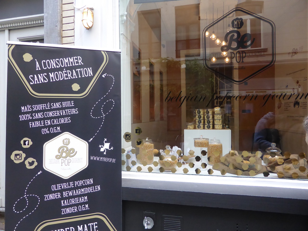 We visited the Belgian pop corn shop on the way home. |