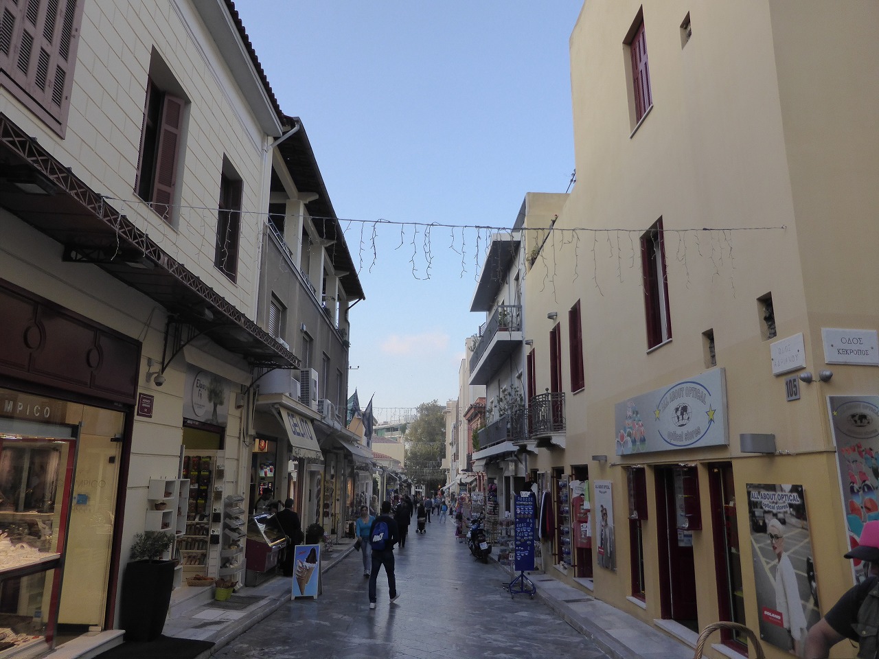 "Plaka" It's the downtown of Athens where there are a lot of shops and cafe on a maze of alleyways. |