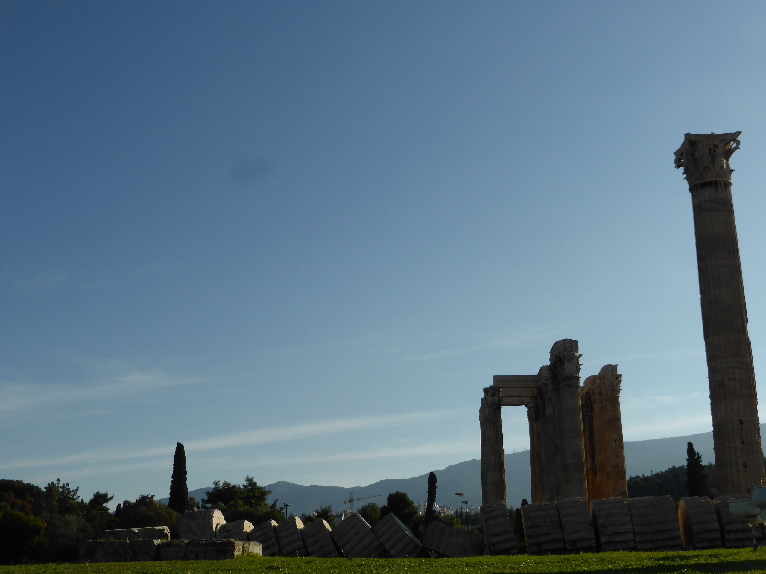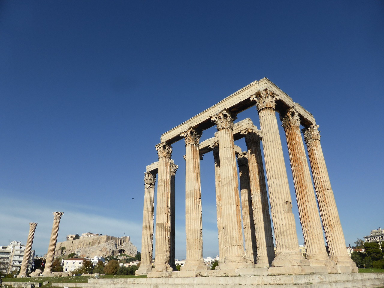 "Temple of Olympian Zeus" We could do such a thing in days gone by. Now the entrance fee is 2 Euros although it was free before. Fifteen columns remain standing today and a sixteenth column lies on the ground where it fell during a storm in 1852. Nothing remains of the cella or the great statue that it once housed.
