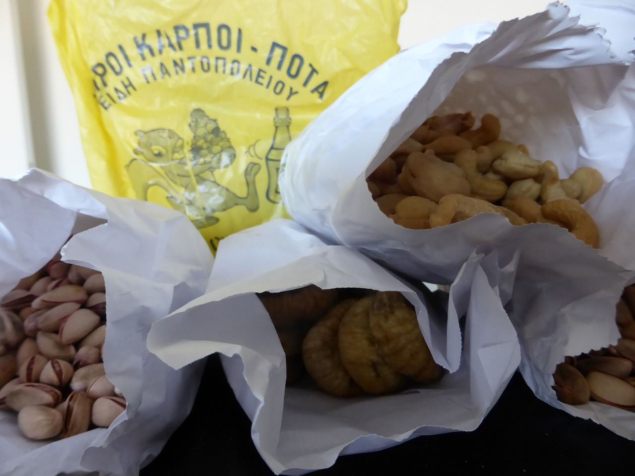 「現代のアゴラ」で買ったナッツ。「エギナ島」産のピスタチオは1キロ買いました。