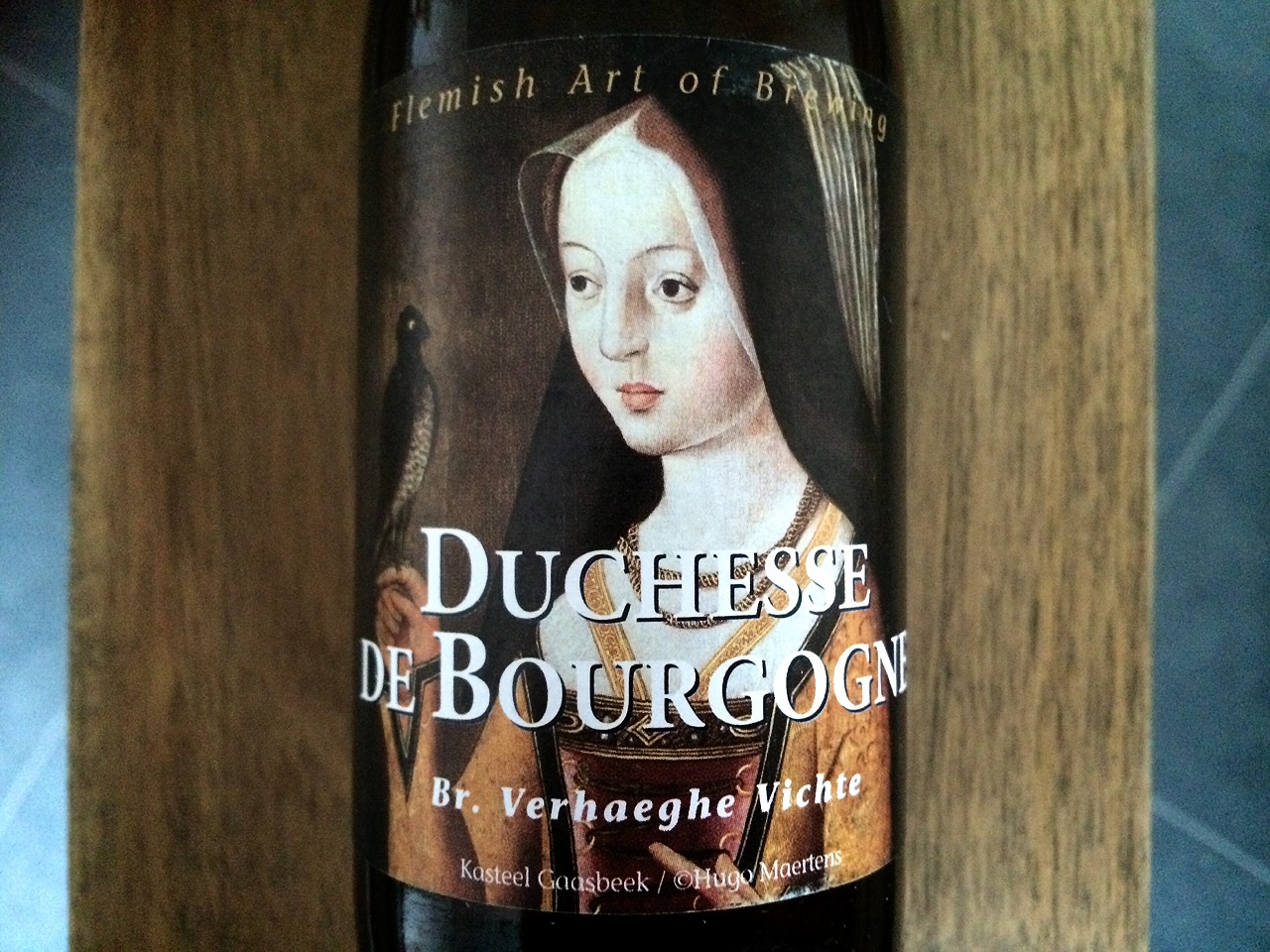 「ドゥシェス・ド・ブルゴーニュ Duchesse De Bourgogne」 ヴェルハーゲ醸造所の製品。名前の意味はフランス語の「美しい侯爵夫人」です。1457年にブルージュで生まれたブルゴーニュ侯爵の娘、メアリーにちなんで名づけられました。8か月物と樫の木の樽で注意深く熟成させた18か月物のビールのブレンドです。色は茶色でベージュの泡立ち。酸っぱいベリー系の果物、キャラメル、酢の香りと味。アルコール度数は6.2%。