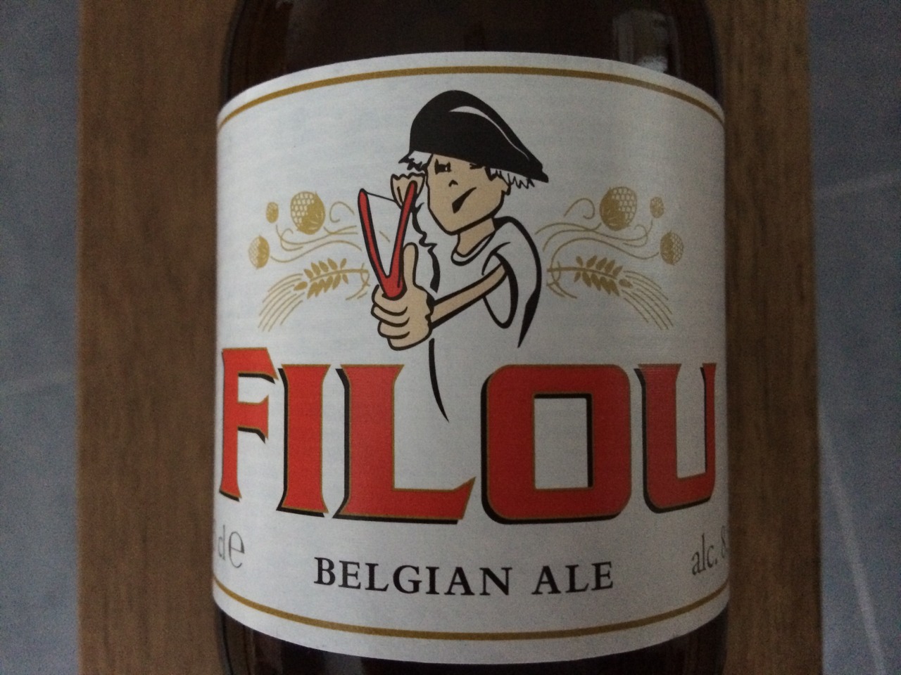 It's a product of Van Honsebrouck brewery. "Filou" means a mischievous boy in French. Yellow golden colour with medium, white head. Aroma has sweet malts, green apple. Taste has yeasty character, medium earthy bitterness. Alcohol percentage is 8.5%. |