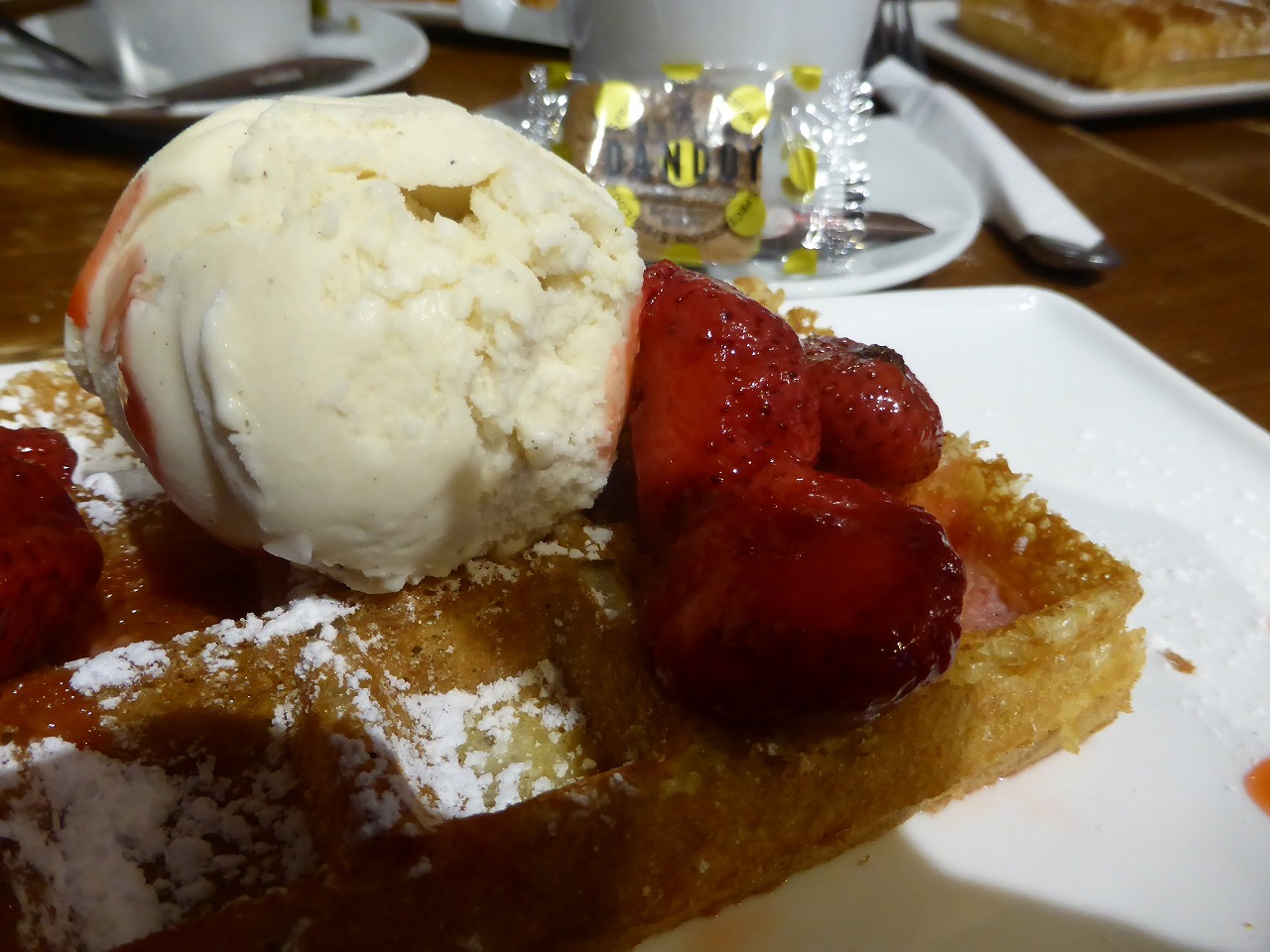 We ate a waffle in Brussels style at "Aux Gaufres de Bruxelles". |