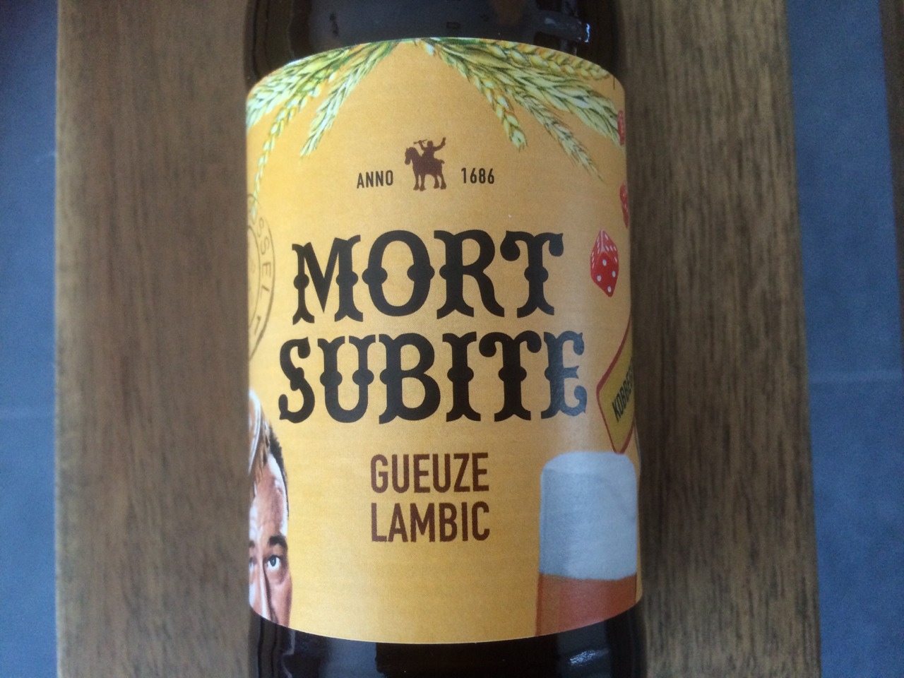 「モール・シュビット・グーズ・ランビック Mort Subite Gueuze Lambic」 モール・シュビット醸造所の製品。金色でわずかな白い泡立ち。酸っぱいリンゴの香り。味も酸っぱく後味はほとんどありません。アルコール度数は4.5%。