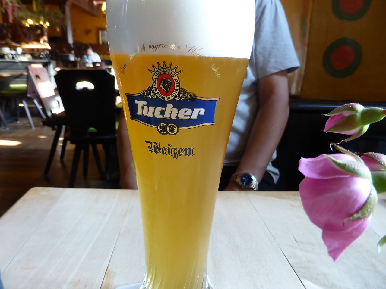 「タッカー・ダンケル・ヘフェ・ヴァイゼン Tucher Dunkles Hefe Weizen」 同じ会社のダーク・ビール。曇った茶色で中程度の大きさのクリーミーな白い泡が立ちます。すべての穀物の香り。味は最初苦く後はなめらかです。アルコール度数は5.2%。
