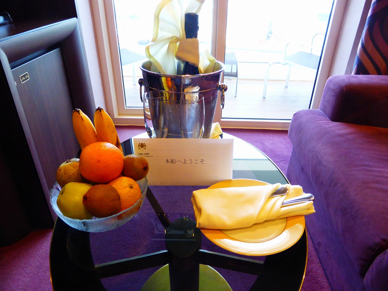 We were going on a Mediterranean Sea Cruise by the ship, "The Preziosa", of Italian cruise company, "MSC". It's a check-in counter for exclusive use of the yacht club member. Champagne and snacks were prepared in the waiting room. Our feelings became lively.