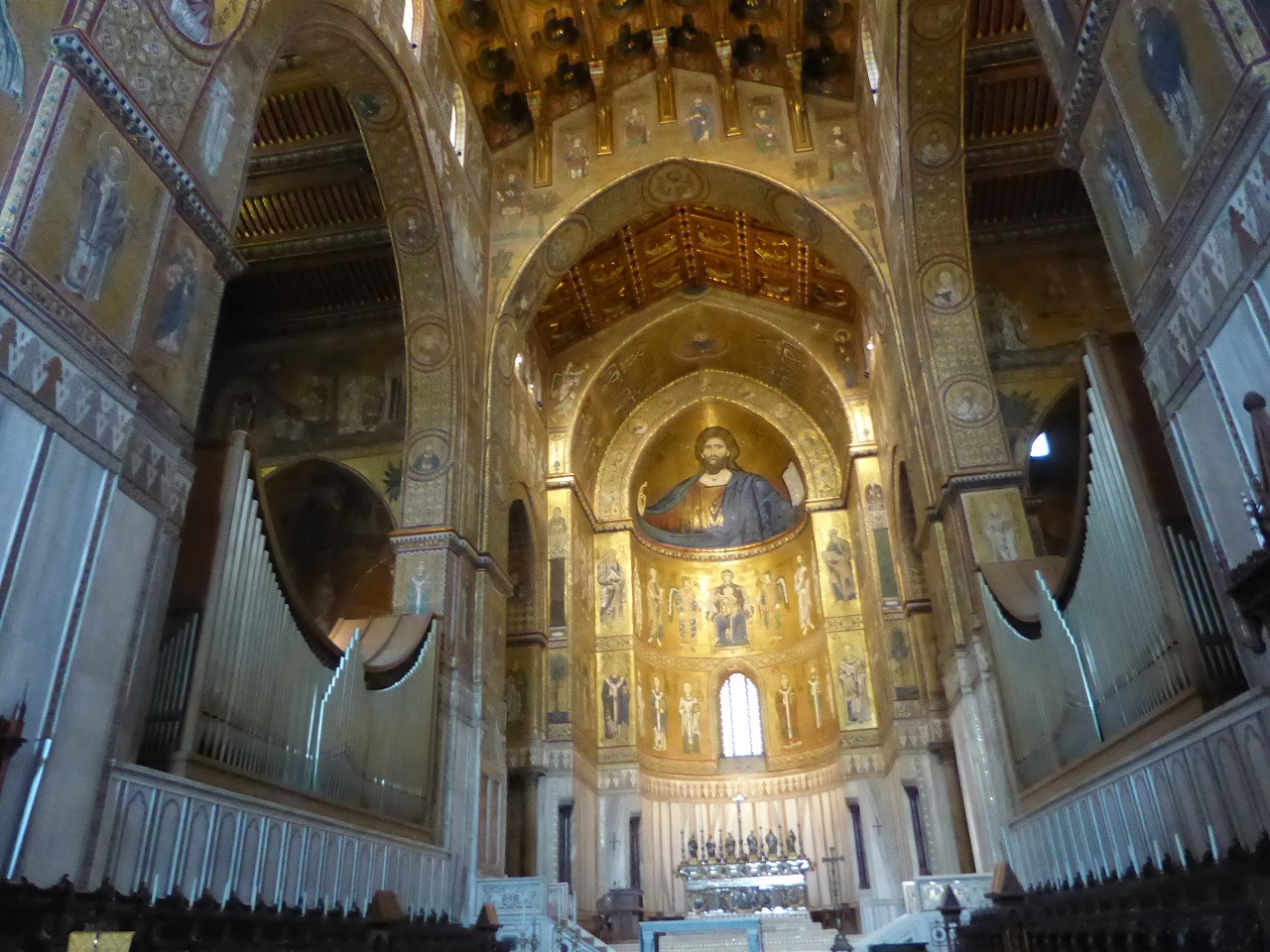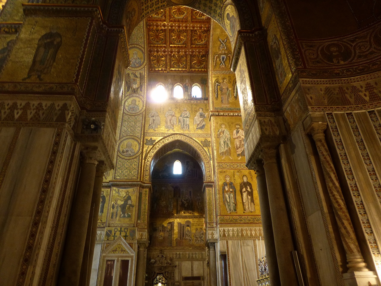 「ノートルダム・ド・ラ・ギャルド・バジリカ聖堂」 モザイクで覆われたナーヴは東洋の匂いをおびたエキゾチックな雰囲気を醸し出しています。同一のモザイクで飾られた3つの半丸天井が上にあります。