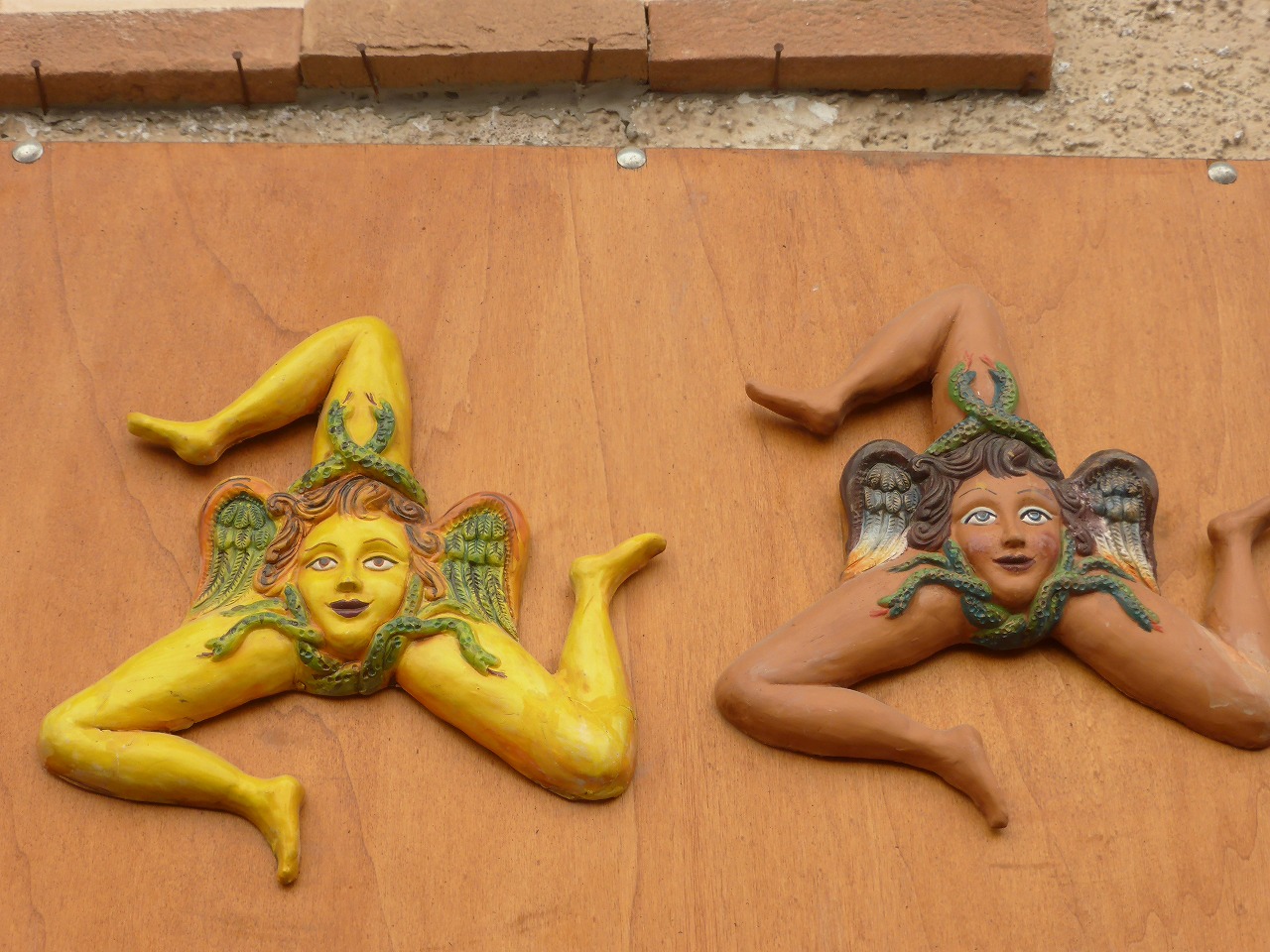 船への帰り道に見つけた変なオブジェ。二人の相撲取りがコンテナを持ち上げています。