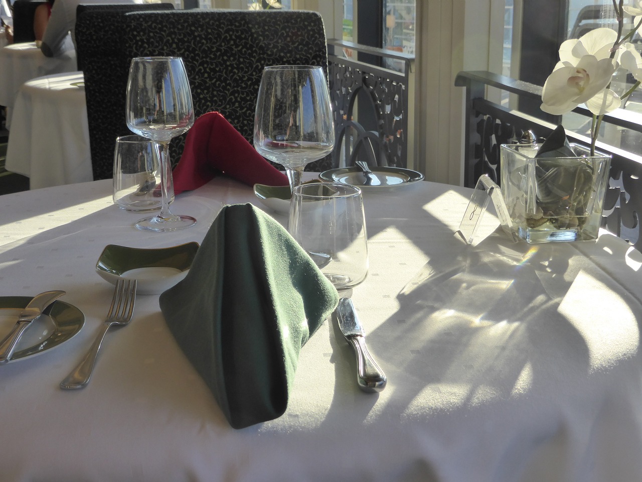 初日のお夕飯。初日だけはレストランまではバトラーさんがついてきてくれます。前菜のお刺身とお寿司。