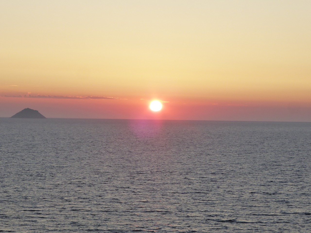 It is the setting sun which sets in the Mediterranean Sea. We will disembark tomorrow. |