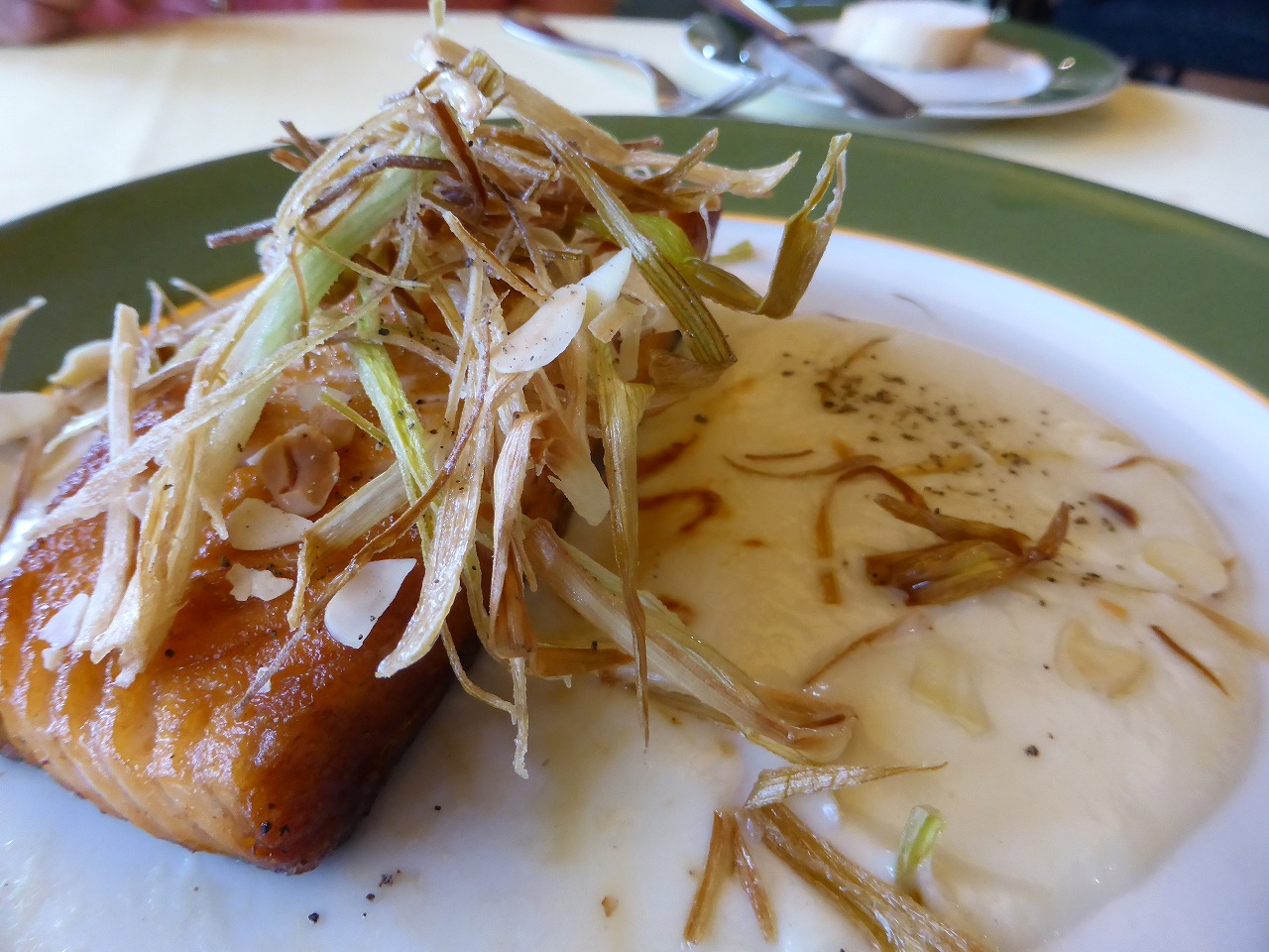 お魚、なにだったか忘れましたー。メニューは毎日変わって、その中から好きなものが選べます。飲み物も好きなだけ!!