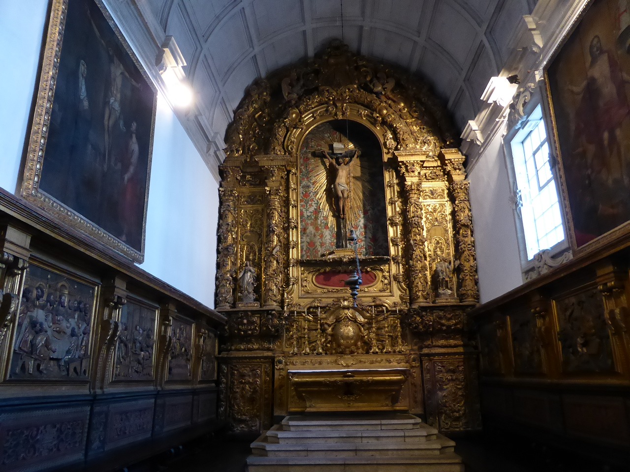 "Cathedral" The interior was also altered during the baroque era. In one of the chapels there is a magnificent silver altarpiece, built in the second half of the 17th century by Portuguese artists. Also in the 17th century the romanesque apse (which had an ambulatory) was torn down and a new one was built in baroque style, later decorated with new wall paintings. |