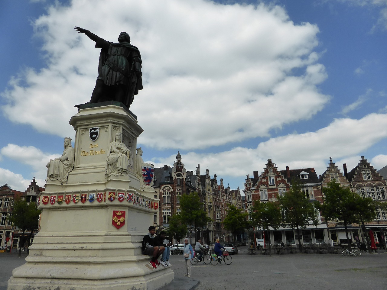 「金曜日広場」 像は賢人、ヘント(ガン)の醸造者などと呼ばれたフランドルの政治指導者のヤコブ・ファン・アルテフェルデです。百年戦争初期に名声を確立しました。