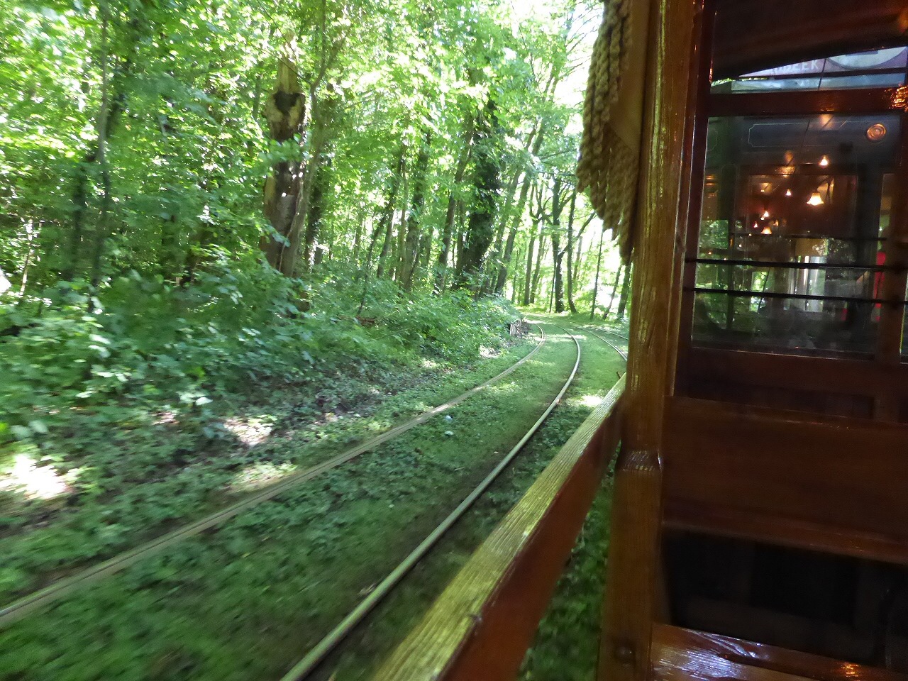 Of course we came back by an old-fashioned tram. A guard with an old uniform blew the bugle, not playing the flute, at the time of the departure. The tram museum was seen behind the tram. I hear about 100 volunteers operate and maintain the tram. |