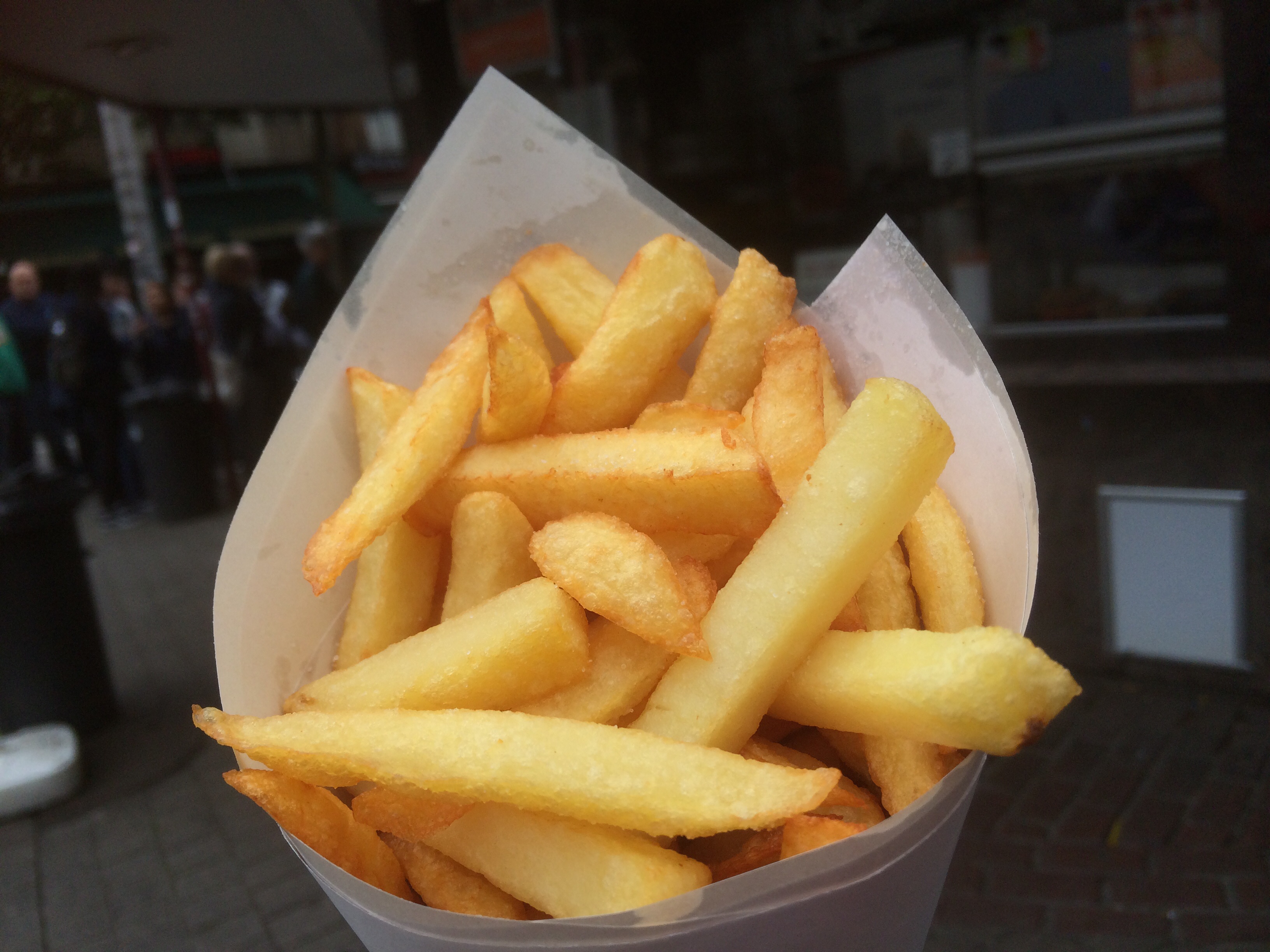 博物館の前にブラッセルでいちばんおいしいと噂のフリッツ屋さん「Maison Antoine」へ。大行列。