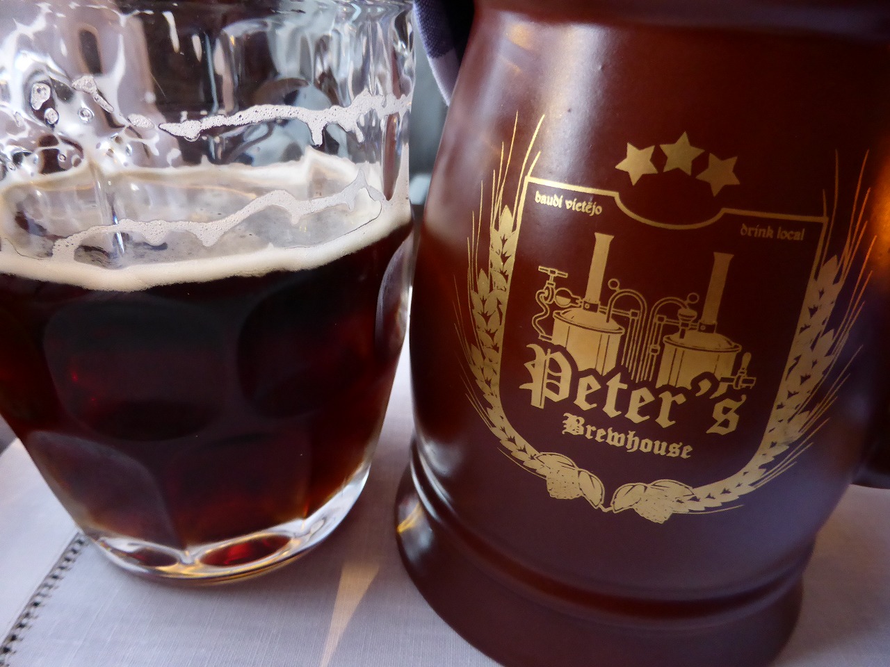 「ピーターズ・ブリューハウス・ダーク Peter’s Brewhouse Dark」 ラトビアのレストランで飲んだ樽ビール。ミュンヘンの麦芽をベースにカラメルされた数種の麦芽を加えたダークラガービールで穏やかな風味があります。キャラメルの風味があり、後味にホップの軽い酸味が残ります。アルコール度数は5%。