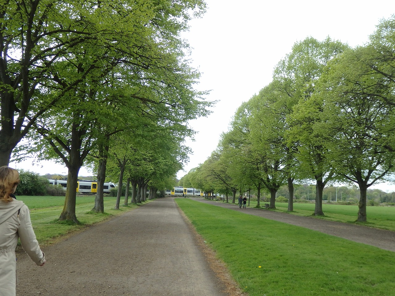 別邸とアウグストゥスブルク城は2,5キロ離れていて片道30分以上歩きます。庭の中を電車が横切ります。ちょっとびっくり。
