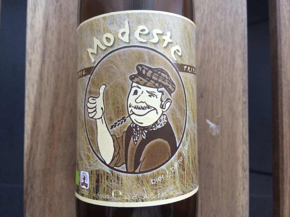 「モデスト トリプル Strubbe Modeste Tripel」 このビオビールはストゥルブ醸造所で醸造されています。色はちょっとにごった黄色で泡立ちは豊かです。フルーティでホップの味がします。アルコール度数は7.8%。