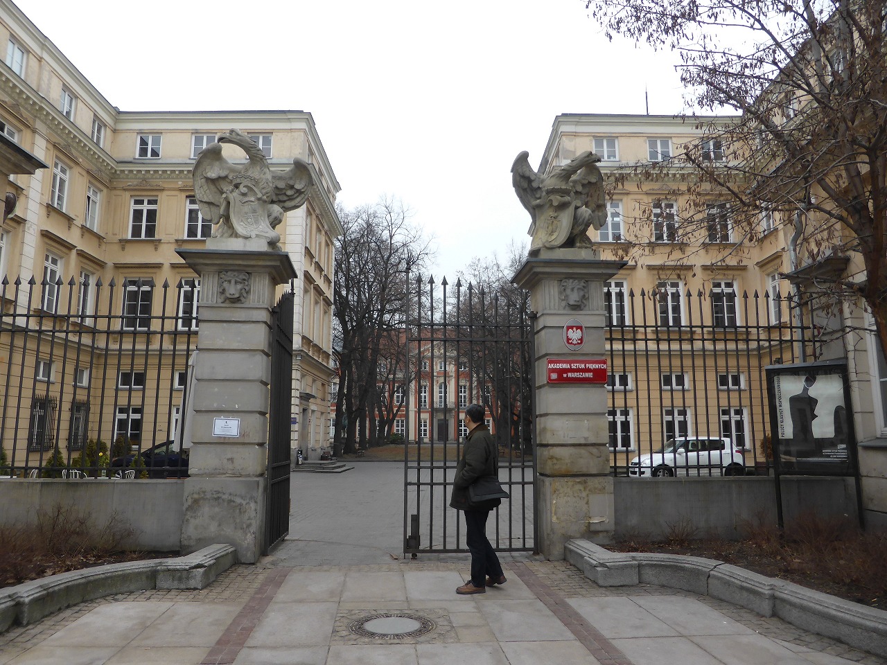 「チャプスキ宮殿」 ここはチャプスキ宮殿でした。ポーランド首都における最も特徴的なロココ建築のひとつと考えれています。1686年頃建設されました。宮殿前の中庭にはアンドレア・デル・ヴェロッキオが作成したバルトロメーオ・コッレオーニの騎馬像のコピーがあります。宮殿左の別館はショパン博物館の別館であり、屋根裏には1985年に開館した美術アカデミーがあります。