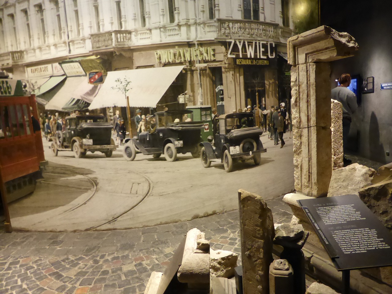 「ワルシャワ蜂起博物館」 閉館時間まで見学しました。この博物館はワルシャワ蜂起のすべての事象を扱っています。数階に及ぶ展示場にドイツ軍のワルシャワ占領時、蜂起時、その後の生活がどうであったかの写真、音声や映像、対話式の展示、工作物、証言等の記録など多くの展示物があります。
