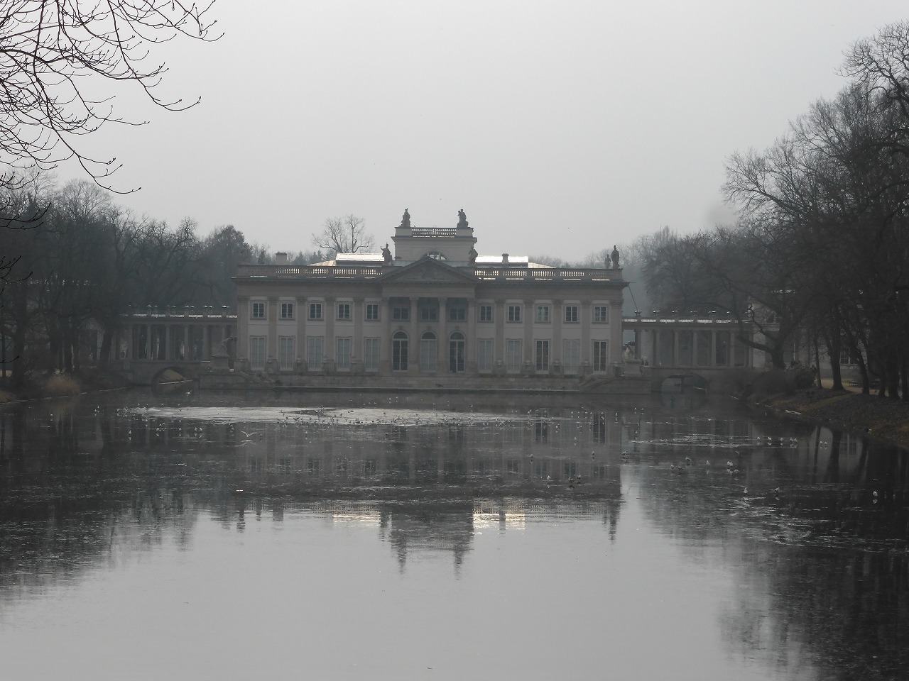 「ワジェンキ公園」 池の水の上を鳥が歩いてる!と思ったら水面が凍っていました。