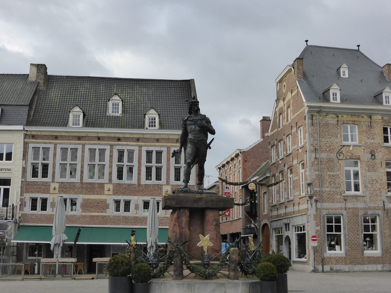 教会前広場。アンビオリクスの像があります。彼は、紀元前1世紀のガリア人でエブロネス族の王。19世紀になって彼はガイウス・ユリウス・カエサルに抵抗したことでベルギーの国民的英雄となりました。