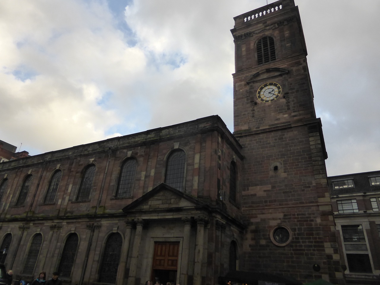 「マンチェスター大聖堂」 この時期はどこでもクリスマスマーケットが開かれています。大聖堂をぐるりとまわって広場に行きます。