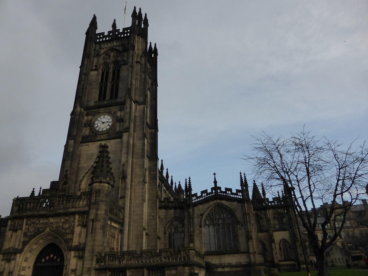 「マンチェスター大聖堂」 この大聖堂の発端は、1215 年にマンチェスター領主ロバート・グレスレット男爵が邸宅に隣接して建てたパリサイ派マンチェスター教会でした。