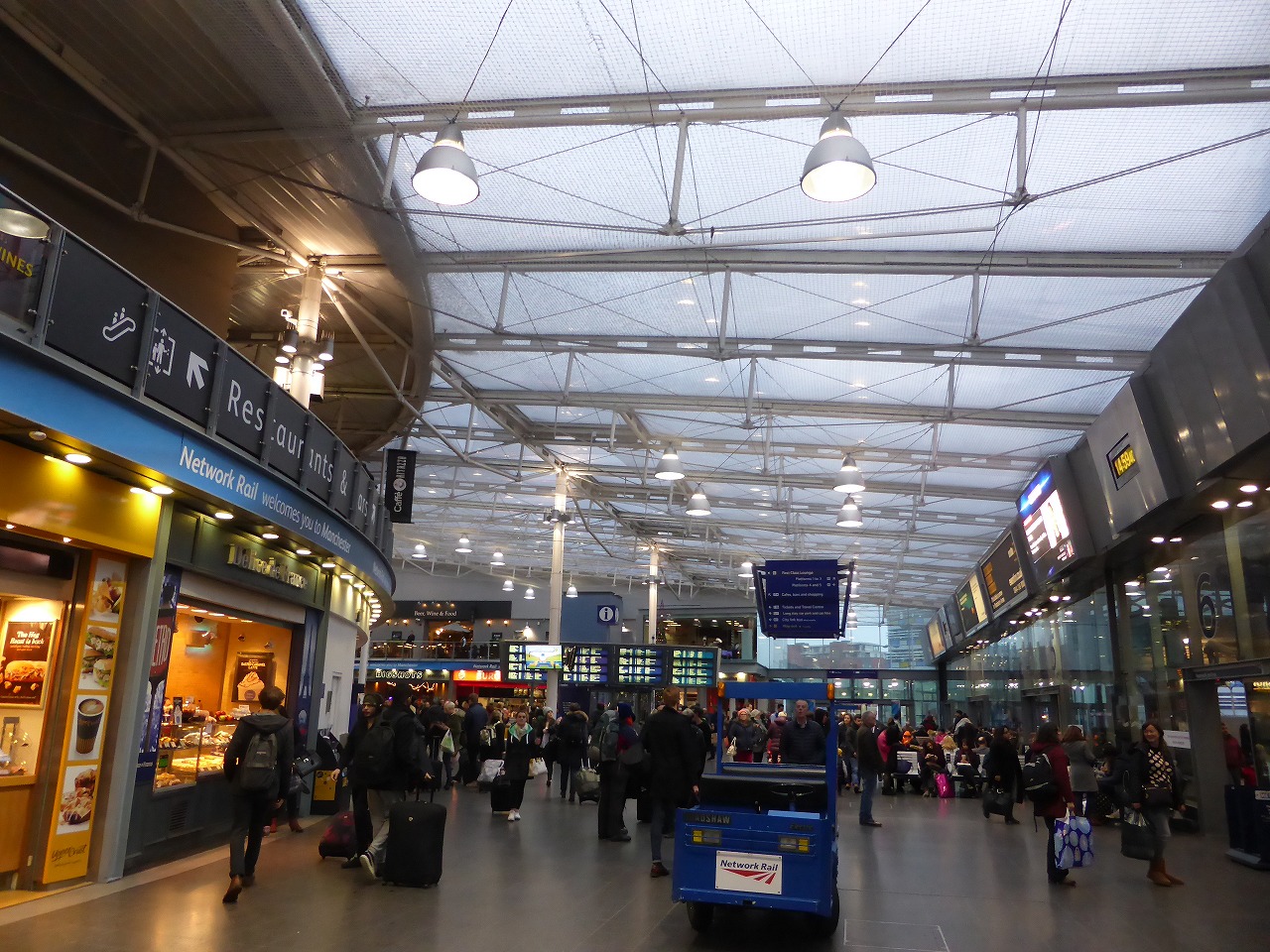 "Manchester Piccadilly" station It was a large station like an airport. |