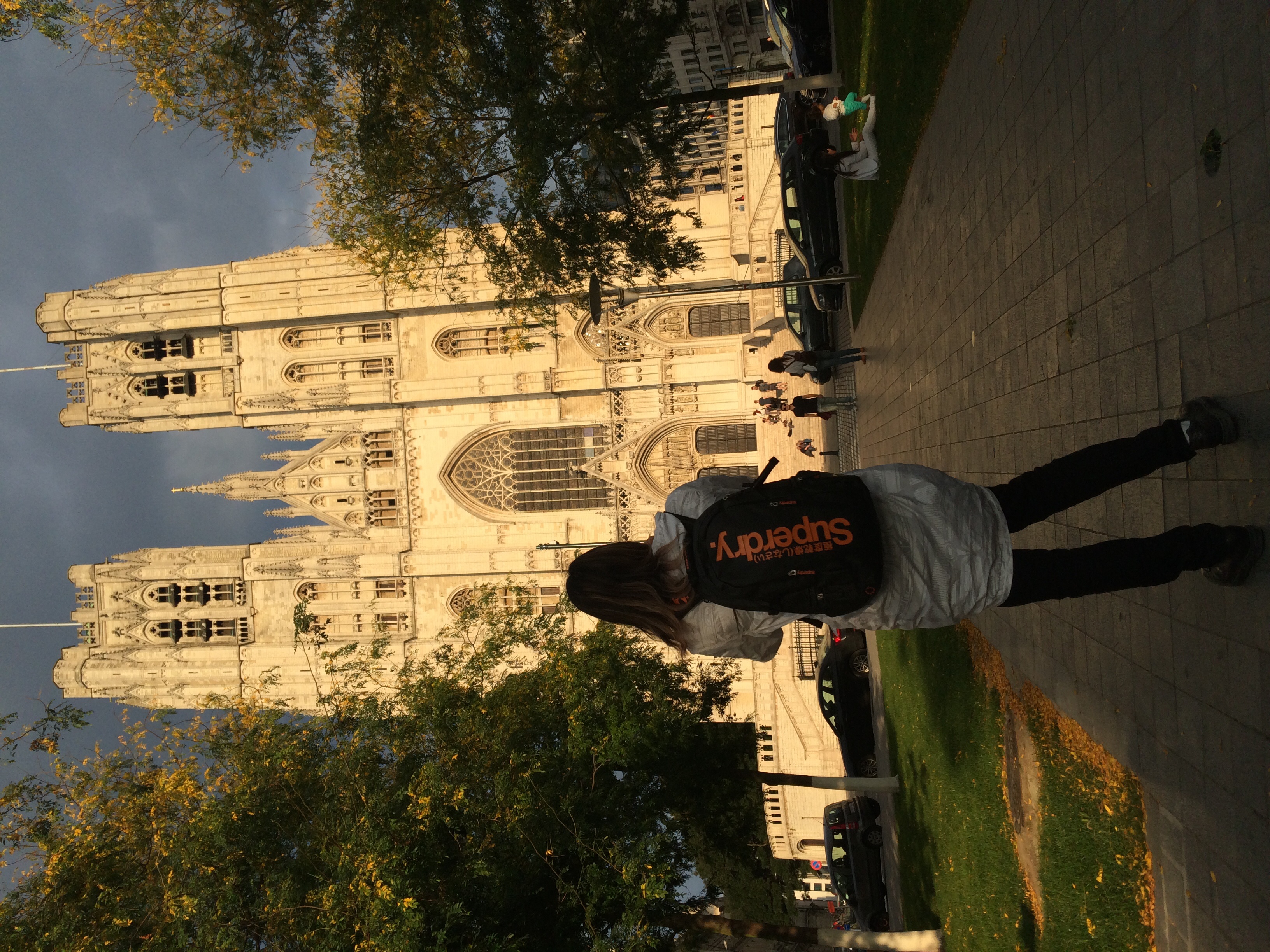 凱旋門の上にのぼりました。凱旋門は1880年のベルギー万博のために計画され、ベルギー独立50周年を記念していました。1880年、柱の基礎のみが完成し万博の間、門の残りの部分は木のパネルでできていました。続く数年間はレオポルド2世王と完成に費用を使いたくないベルギー政府の間の長く続く戦いの種でした。結局1905年に完成しました。