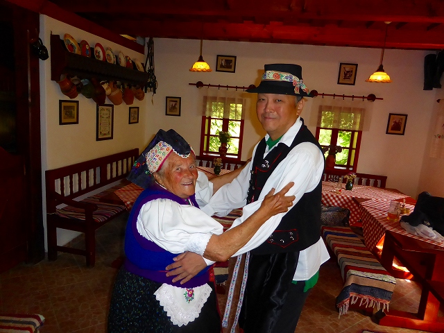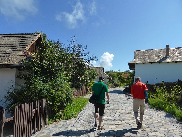 小さな村であっという間に一周できます。建造物群の大半は1909年の大火で焼失してしまったため、20世紀になって再建されたものです。再建時には石壁を主体とするようになり、木造は限定的に取り入れられています。右にいるのは日本語ベラベラのハンガリー人ガイドさん。4年勉強しただけでここまでうまくなるのかというレベル。
