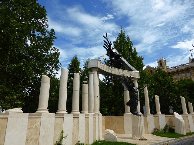 ユダヤ人の慰霊碑 ハンガリーはもともとアジア系のマジャール人の国家なのでユダヤ人迫害はあまりありませんでした。2次大戦中の1944年にドイツに国土が占領されてから迫害が始まり、43万人以上のユダヤ人がアウシュビッツに送られました。実は最初の写真の靴もあそこでユダヤ人が射殺されドナウ川に投げ込まれた歴史を忘れないためにあります。