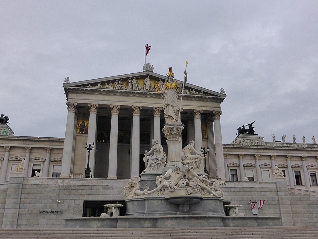「国会議事堂」 この建物も市庁舎と同時期に建てられています。建物の前は多数のギリシャ神話の神の彫刻が並んでおり重厚でかっこいいことこのうえありません。