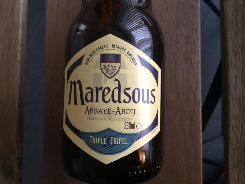 「マレッツ・トリプル MAREDSOUS TRIPEL」 デュベル・モルトガット醸造所で醸造。マレッツはナミュール州の南のドネー村というところにあるベネディクト派の修道院です。深みのある琥珀色で、オレンジやバナナのようなフルーティな香りと高アルコールの調和がとれています。アルコール度数は10%。
