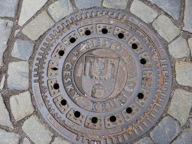 We can see the name of Cesky Krumlov also on all manhall cover of the town. |
