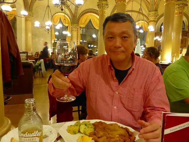 ウィーンに帰って夕食。 ホテル横の「ツェントラル」。「フェステル宮殿」内にあります。カフェは1876年に開業し、19世紀後半にはウィーンのインテリ達の集会場となっていました。