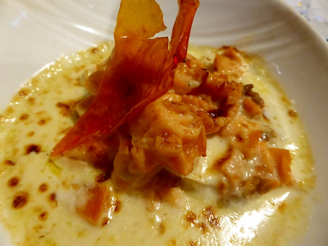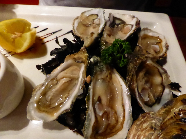 ル・ムートン・ブラン・ホテルのレストランで夕食。カキ。