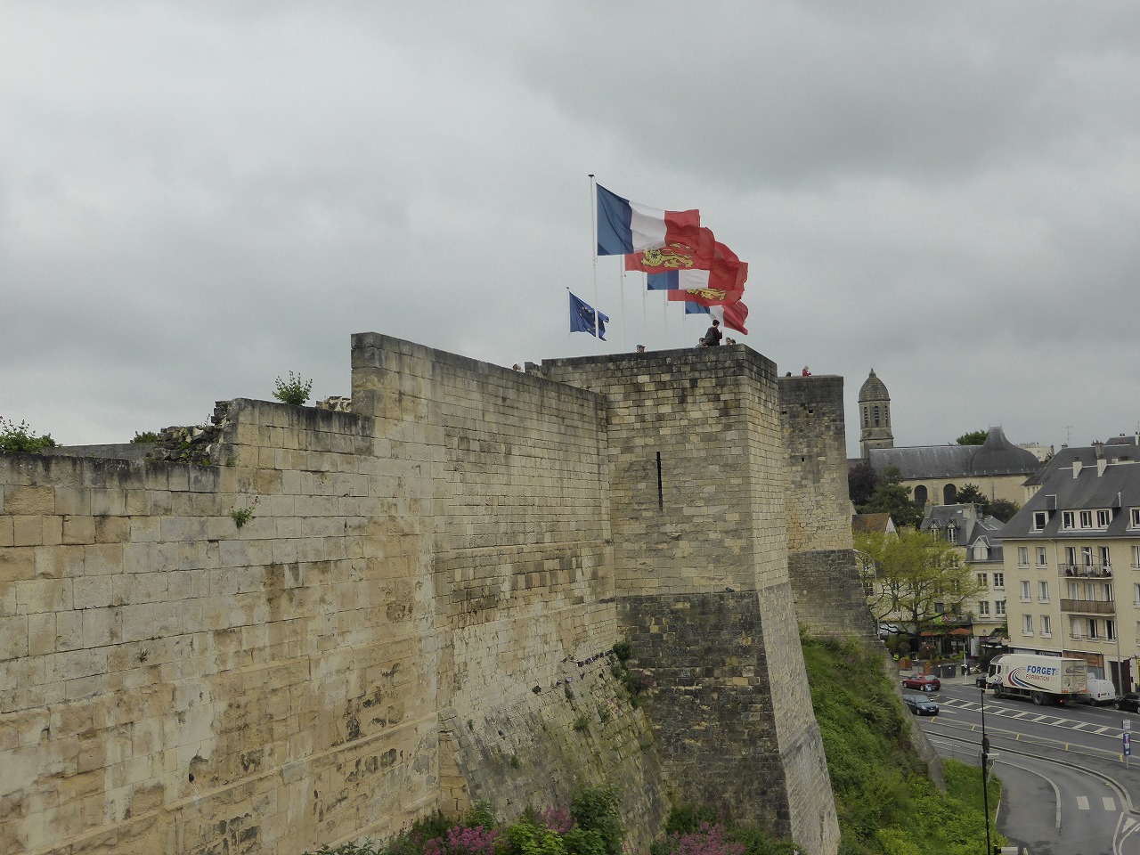 カーン城の城壁。 有名なイギリスを征服したノルマンディー公ウィリアムが1060年に築いたお城で、城壁しか残っていません。敷地内には美術館とか博物館とかありますが、入場していません。