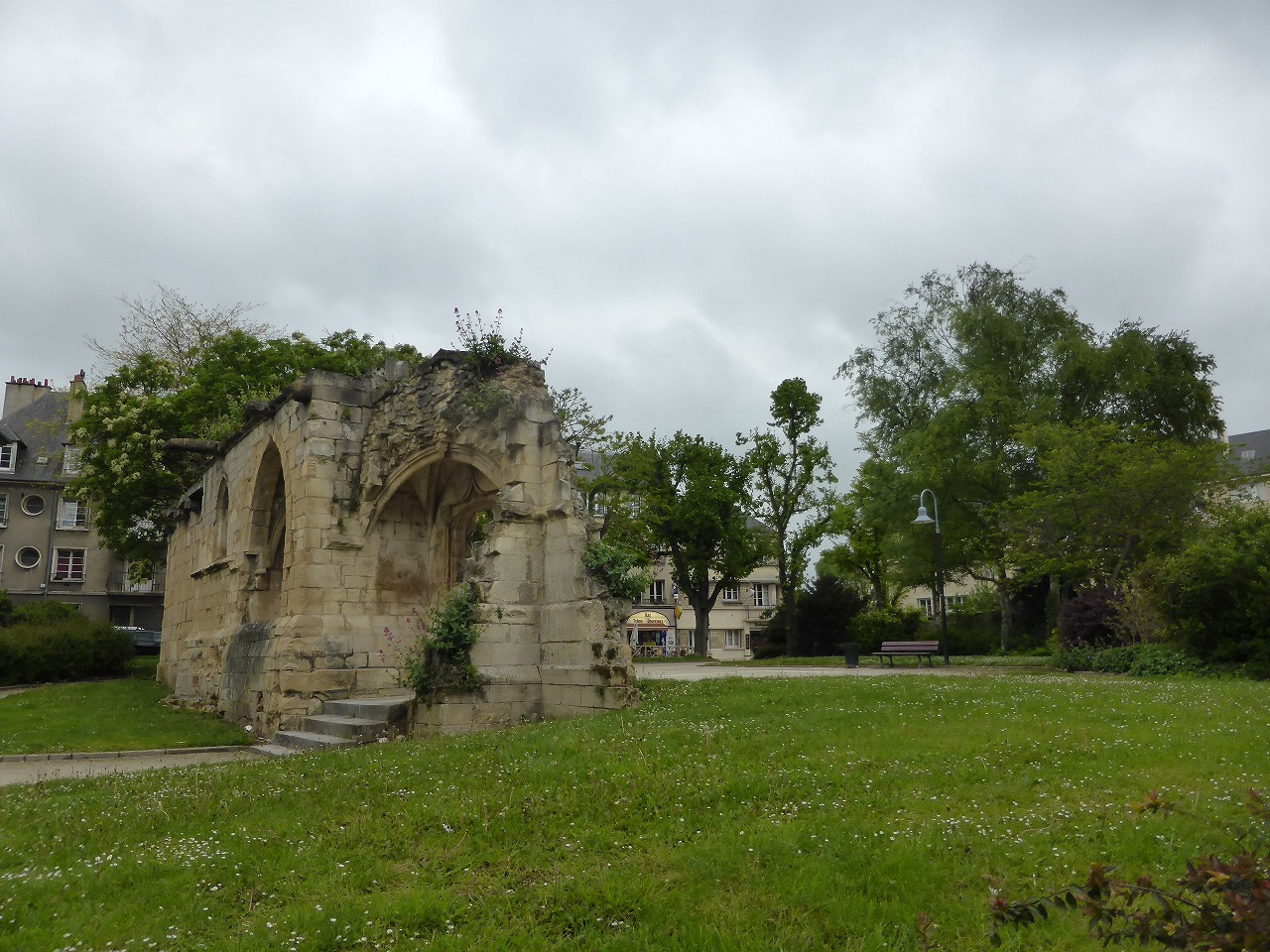 Saint-Lô also has remains of its medieval line of walls. There is no explanation around it, so we don't know the history. Even if there is a explanation, the situation is same because we can't read French. |