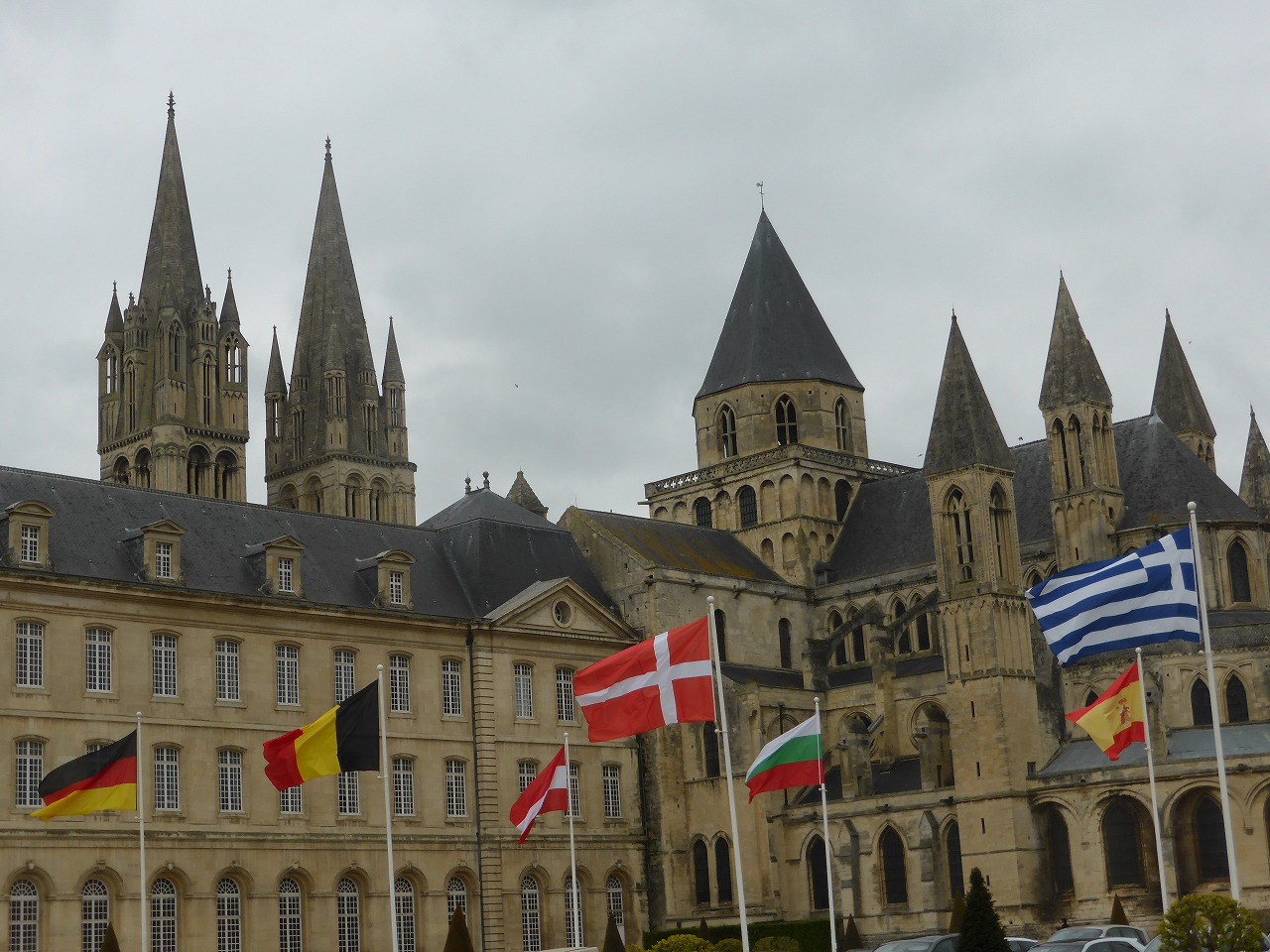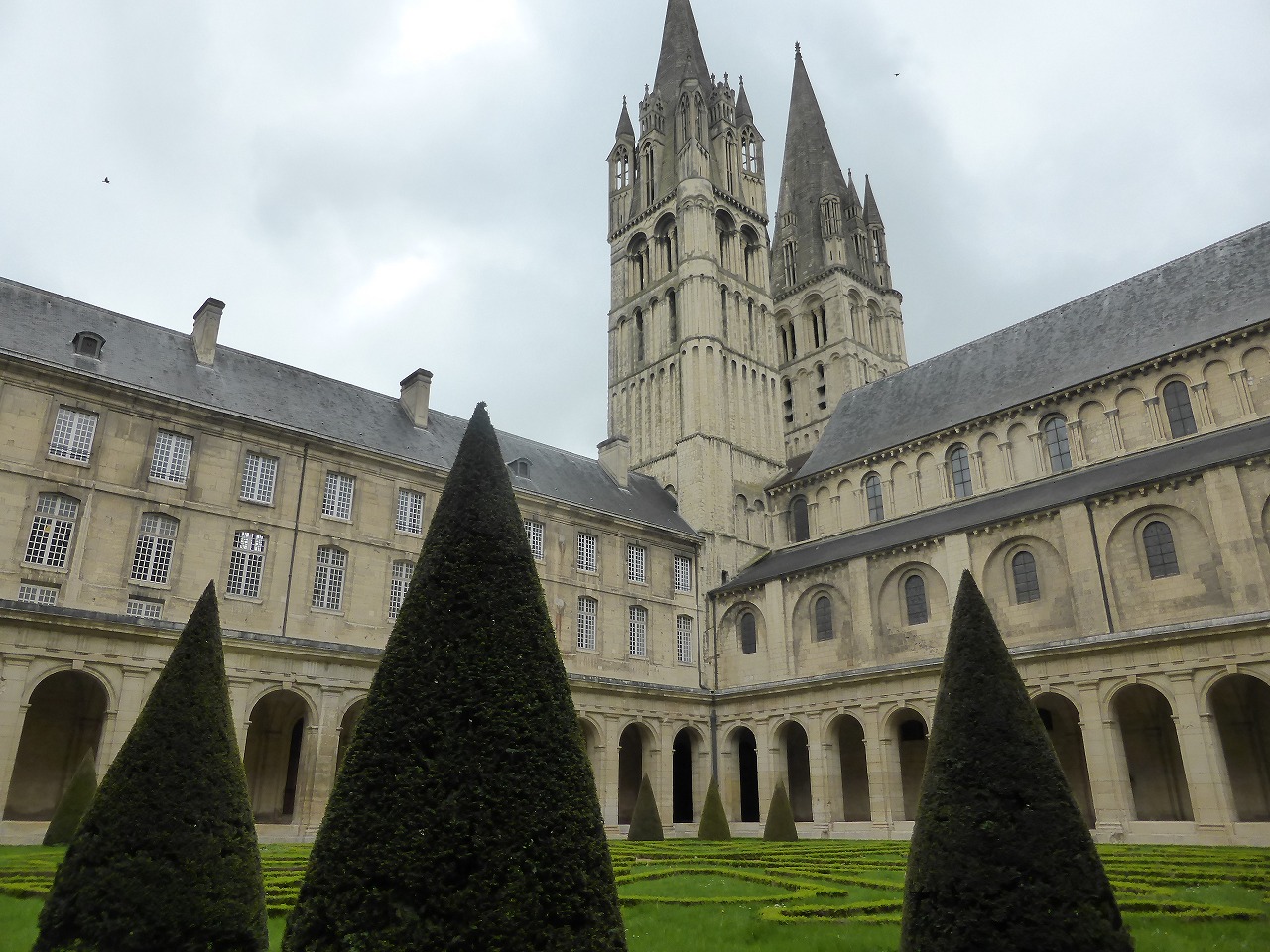 女子修道院。 ウィリアム征服王の奥方マチルダによって1062年に建設が開始され、1130年に完成しました。フランス革命の際、修道女のコミュニティーは弾圧され解散させられました。天井は1865年に取り壊され再建されています。現在は地方会議場で見学ツアーがあります。最初はそのツアーについていったのですが、フランス語のみなので、断念。