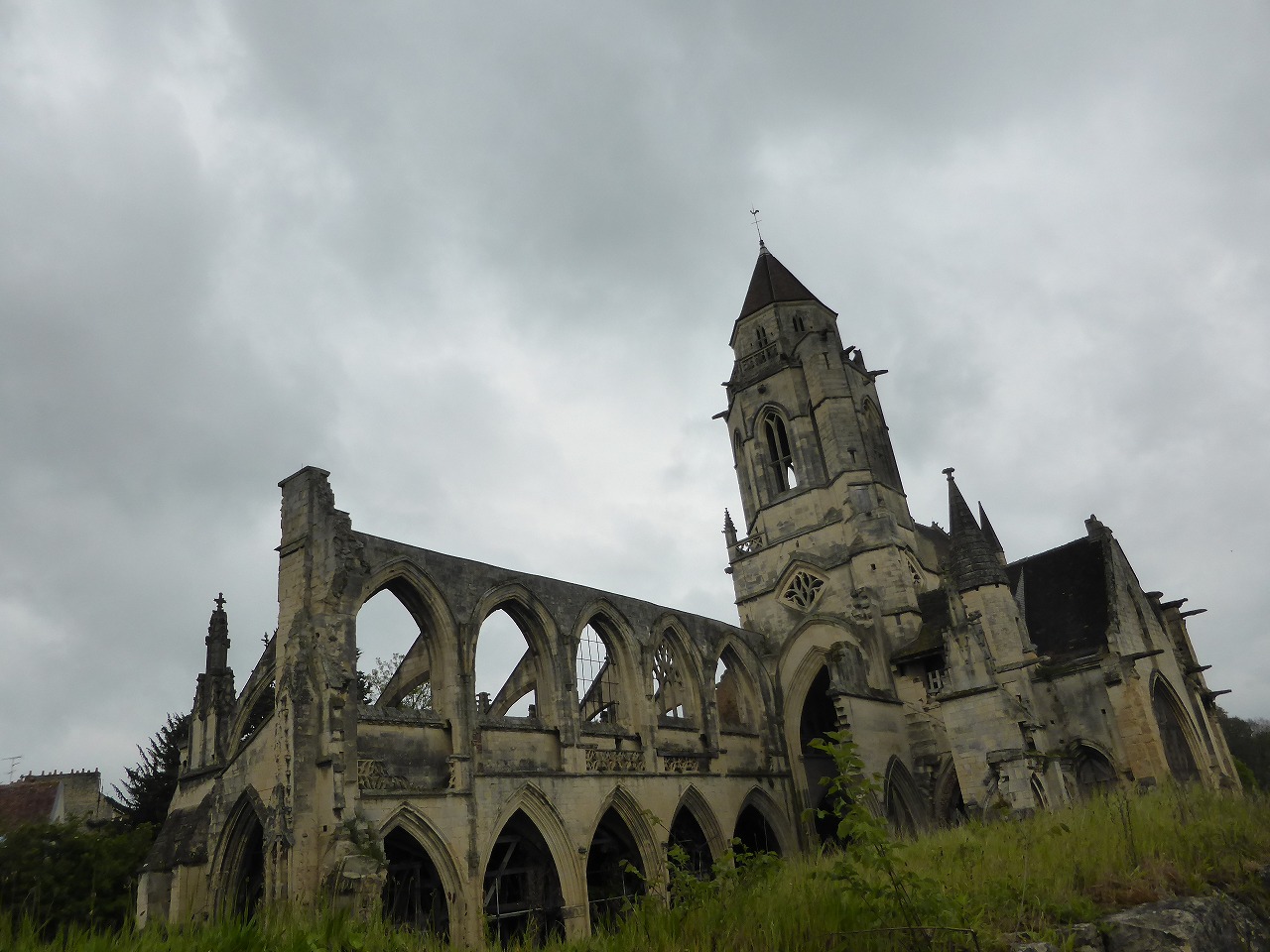 It's Church of Saint-Etienne-le-Vieux. The church was probably founded during the 10th century. The church was badly damaged during the Hundred Years' War and reconstructed during and after the English occupation. The chrch was closed to the public in 1844 because of its state of decay. In 1944, it was hit by a shell aimed at a column of German tanks which was parked in the vicinity. The nave was largely destroyed. Since that time the church has not been the object of restoration work. Though Caen is restored more than Saint-Lo, it's not all. "Hitler Youth" kept on protecting Caen from the overwhelming British military for approximately two months and caused a big delay in a schedule of the Normandy landing operation. On the other hand this division lost the staff more than 60% in 20,000 capacity and was destroyed once. Though Michael Wittmann who was the ace of tank warfare of the German Waffen-SS didn't belong to this division, he also defeated 27 combat vehicles in this battle. (He is famous by having defeaten tanks more than 100 at a Russian front.) |