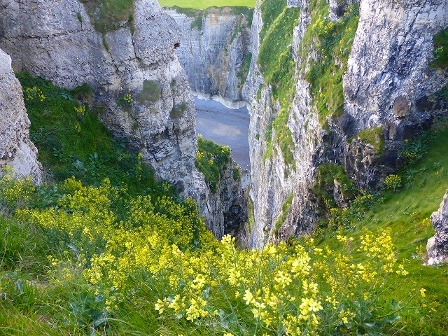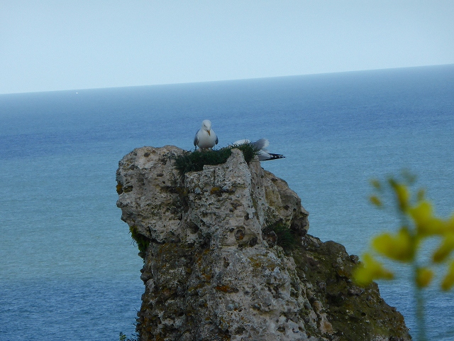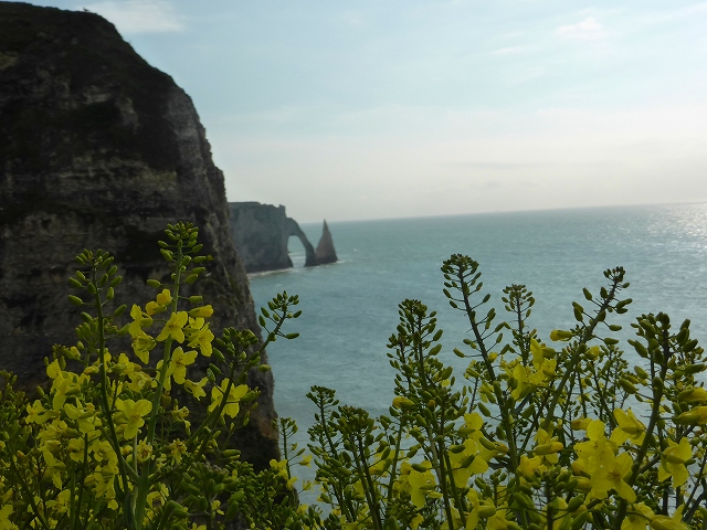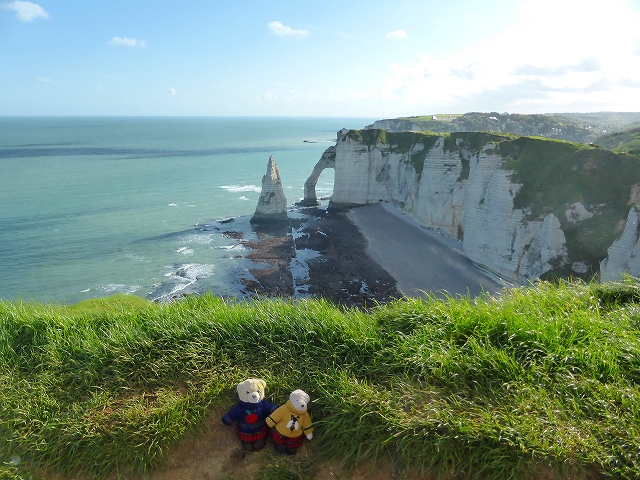 「エトルタ」は二つの岸壁に挟まれています。教会のある岸壁に登って、象の鼻のような岸壁を望みます。