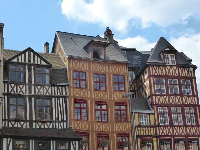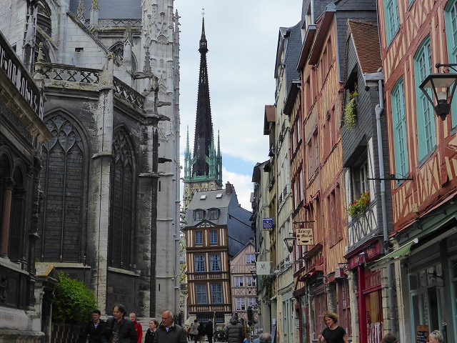 「エトルタ」を出て 街そのものが美術館と言われる古都、「ルーアン」に到着。ノルマンディー独特の木骨組の建物が印象的。ここは上部ノルマンディー地方の首都でありノルマンディーの歴史的首都です。中世ヨーロッパにおける最大で最も繁栄した都市のひとつであり、中世ノルマンディーの財務省でもありました。11世紀から15世紀にかけてイングランドと近代フランスの大部分を統治したアングロ-ノルマン王朝の首都の一つでもありました。ジャンヌ・ダルクが1431年に処刑された場所もここです。