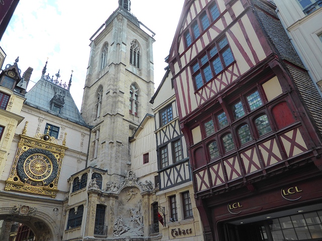 木骨組の建物と大時計はルーアンのシンボル。Gros Horlogeは16世紀に遡る天文時計ですが、ムーブメントは更に古いです。(1389年)