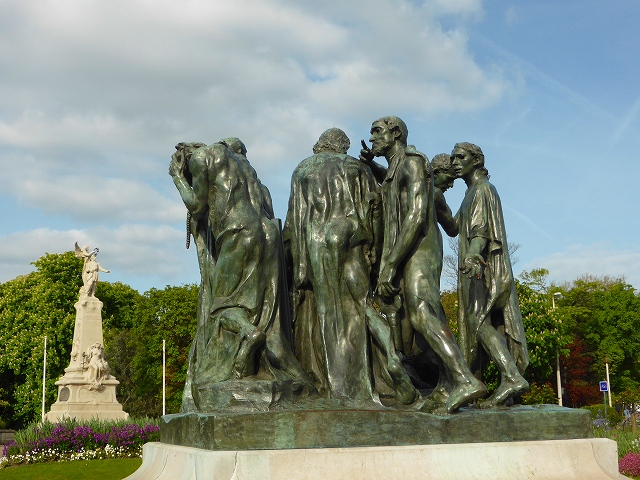 "Calais" This sculpture is "The Burghers of Calais" of Auguste Rodin, completed in 1889. In the case of 100 years war, Calais was occupied by the England after long-siege. The story that Saint Pierre and five other burghers arreared in fron of Edward III, the king of England and saved other citizens in 1347 is a motif. |