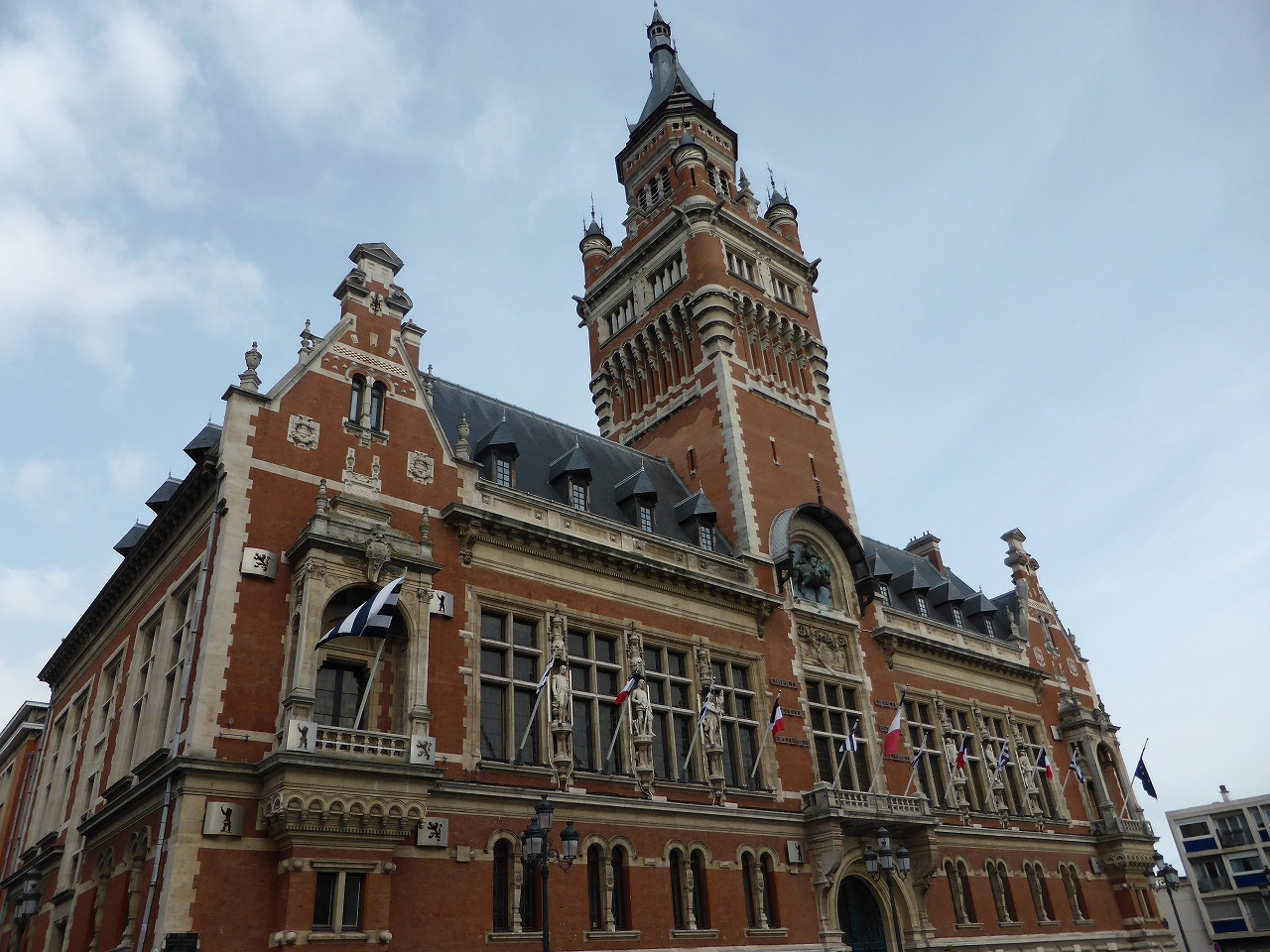 カレーをすぎてダンケルクへ。ここは第2次大戦のフランス降伏前、34万人の英仏軍がドイツ軍の爆撃の中イギリスまで撤退したことで有名な場所。そんなことがわかるものは今なにも残ってませんけど。写真は市庁舎。